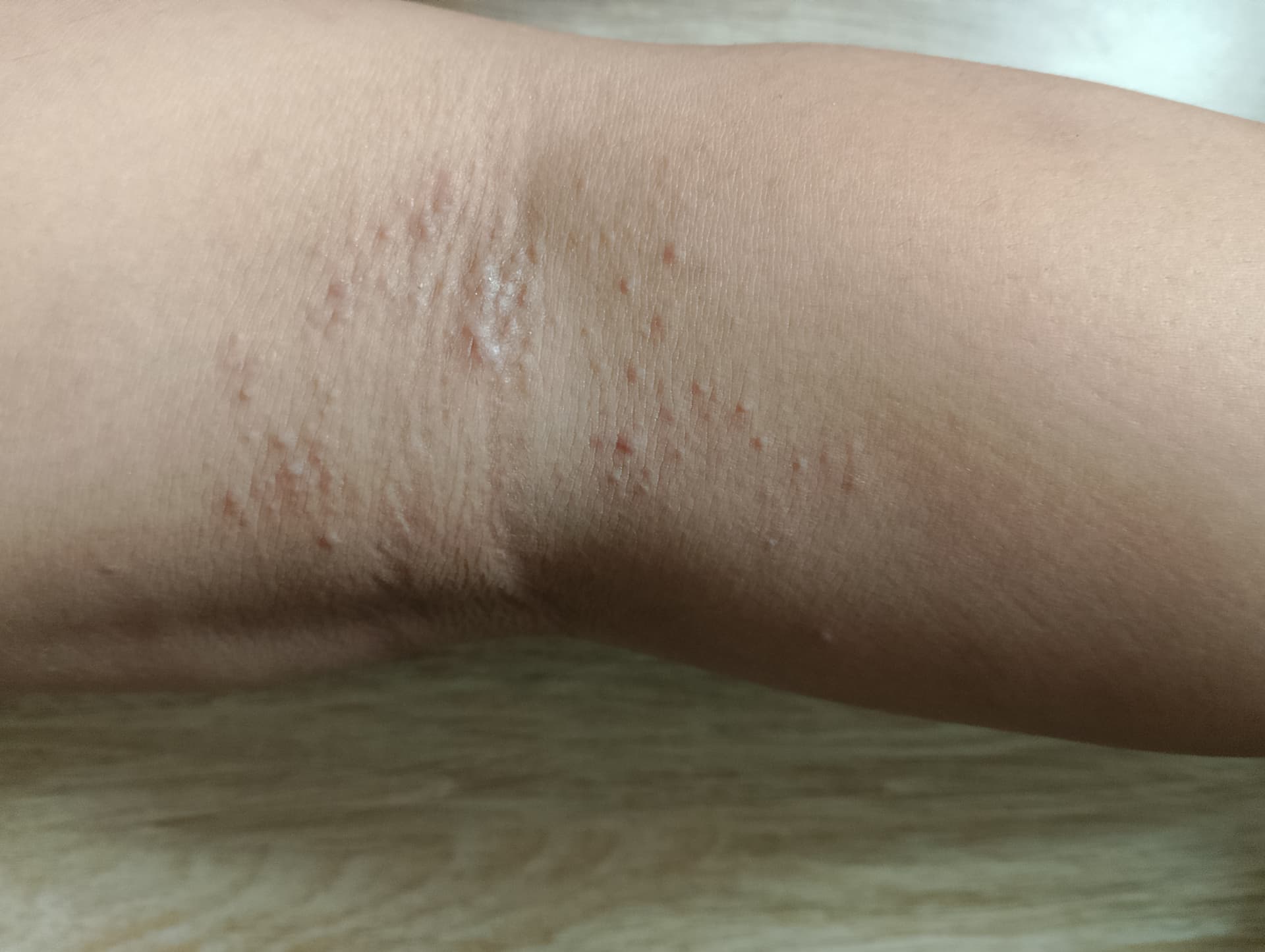 จากภาพที่คุณส่งมา ดูเหมือนว่าเป็นอาการผื่นหรือผดร้อนที่มีลักษณะเป็นตุ่มเล็ก ๆ และมีรอยแดงในบริเวณที่อับชื้นค่ะ สามารถใช้ PHOEBUS CREAM (พีบัสครีม) ทาได้ เนื่องจากผลิตภัณฑ์นี้มักใช้รักษาอาการผิวหนังอักเสบและช่วยลดการติดเชื้อราทางผิวหนัง อย่างไรก็ตาม นี่คือคำแนะนำเพิ่มเติมก่อนใช้ค่ะ: