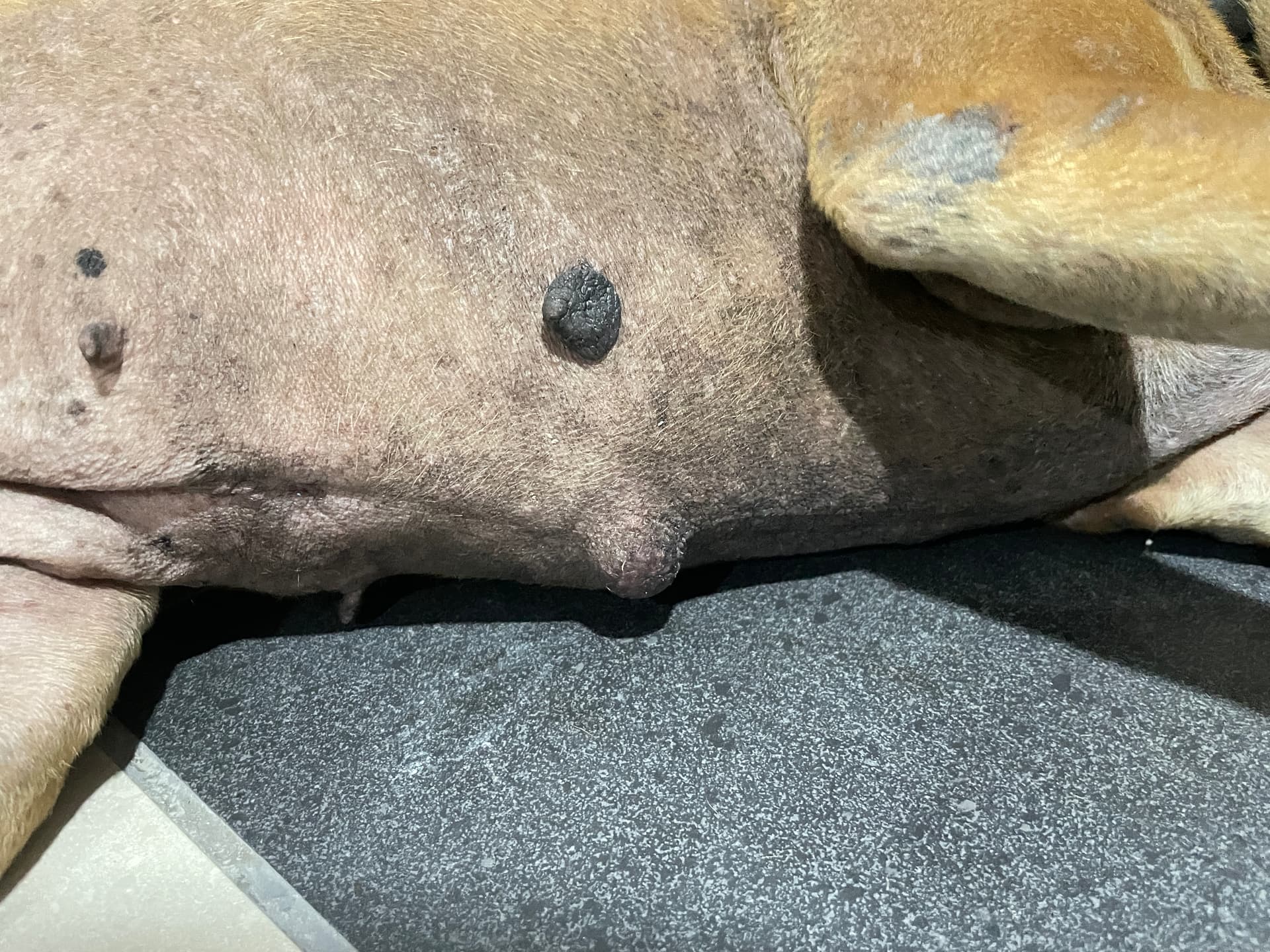 - หัวนมหรือปุ่มนมปกติ: สุนัขมีหัวนมหลายคู่ บางตัวหัวนมอาจดูโตหรือนูนกว่าปกติ และมีสีเข้มขึ้นตามอายุค่ะ