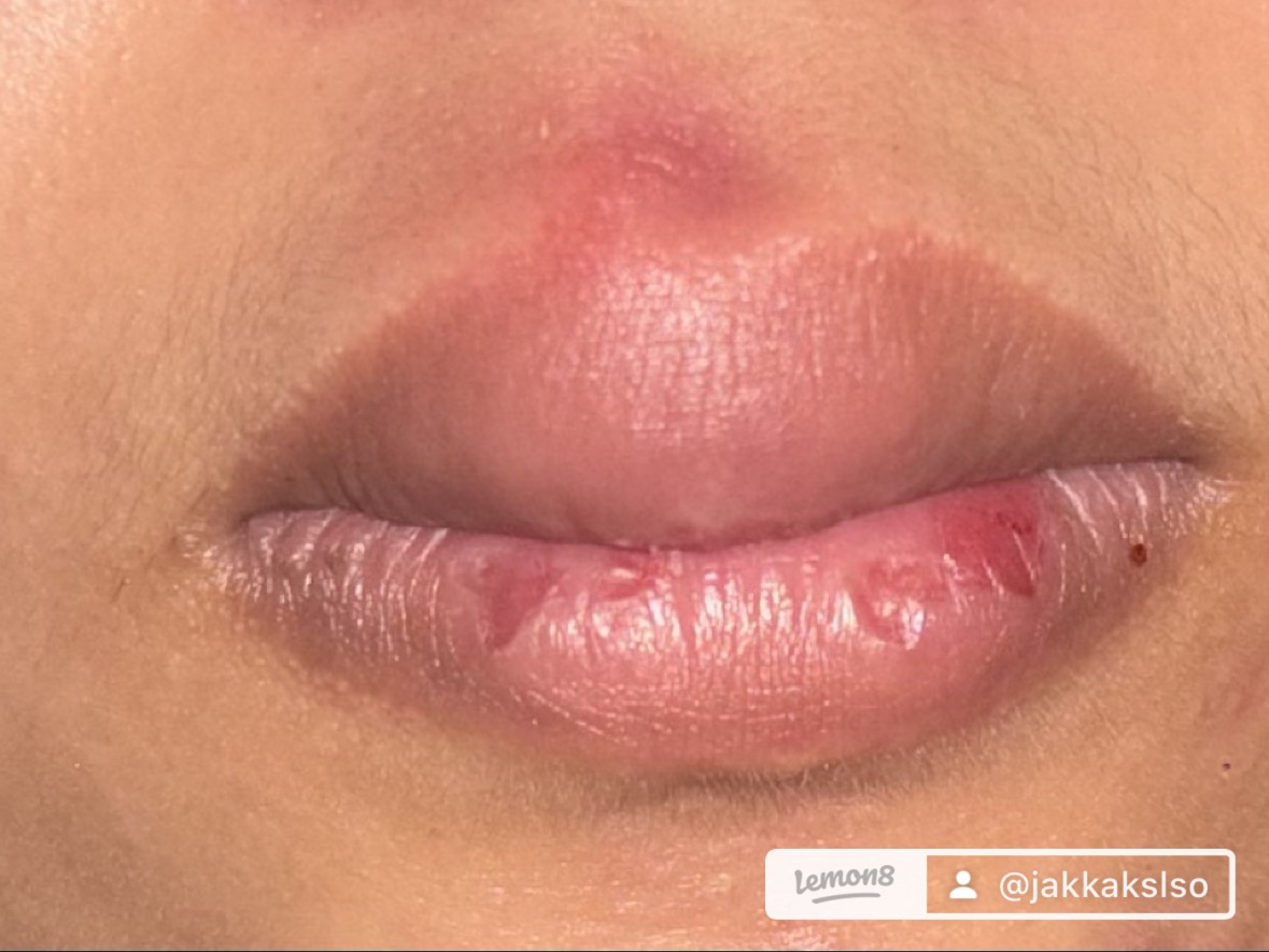 - การติดเชื้อเริม (Herpes labialis) – มักเริ่มจากคันหรือแสบร้อน แล้วเกิดตุ่มน้ำใสเล็กๆ รวมเป็นกลุ่ม บางครั้งริมฝีปากบวมร่วมด้วย แต่จากภาพในกรณีนี้ตุ่มแดงออกแนวสิว/ฝีมากกว่า แต่ก็ไม่ควรตัดออกหากอาการเปลี่ยนค่ะ