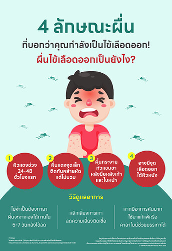 ดังนั้นหากมีไข้สูงต่อเนื่องหลายวัน ทานยาลดไข้แล้วไม่ดีขึ้น มีผื่นแดงขึ้นตามตัว ไม่ควรนิ่งนอนใจ เพราะอาจเป็นสัญญาณของโรคไข้เลือดออก ควรรีบไปพบแพทย์เพื่อรับการตรวจประเมินอย่างละเอียด ก่อนเข้าสู่ระยะอันตราย [8]